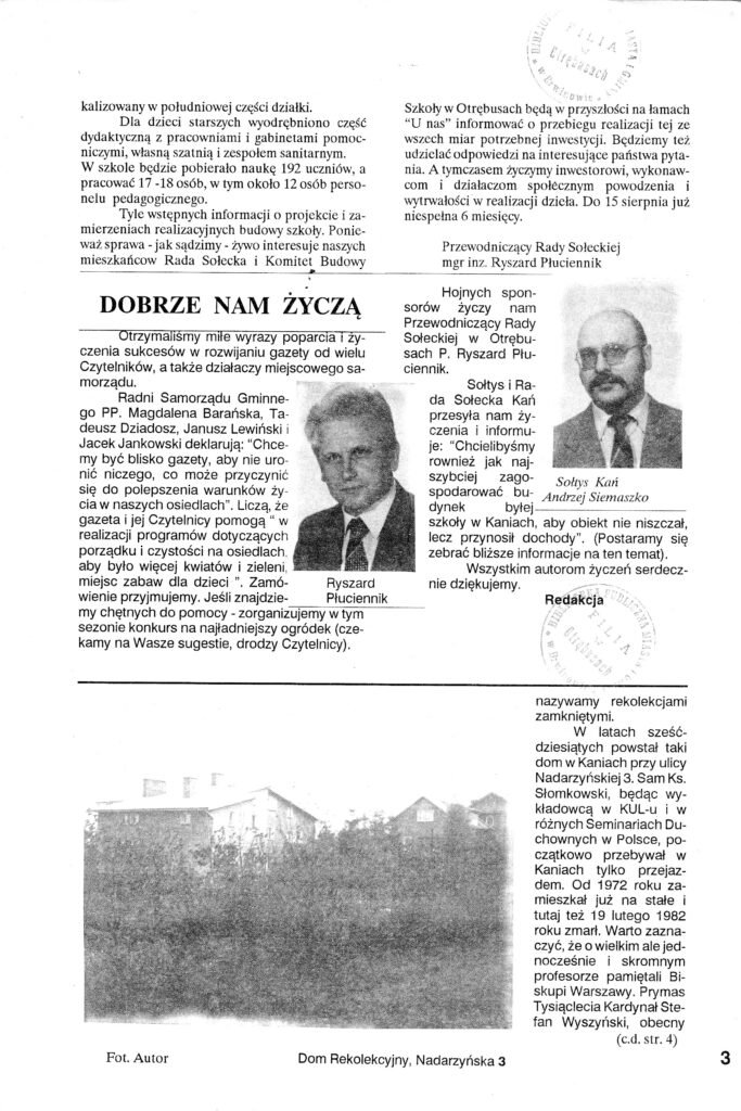 Nazwisko Tadeusza Stachowicza znane jest nie tylko w Otrębusach. Był artystą malarzem, absolwentem warszawskiej Akademii Sztuk Pięknych, ale przede wszystkim współtwórcą i redaktorem naczelnym czasopisma „U Nas O.K.”, które początkowo zajmowało się sprawami  Otrębus i Kań, a z czasem stało się gazetą powiatową zdobywającą nagrody w ogólnopolskich konkursach prasy lokalnej. Na jego łamach Tadeusz Stachowicz publikował w latach 90. cykl artykułów o historycznych willach, ilustrowany własnymi grafikami.